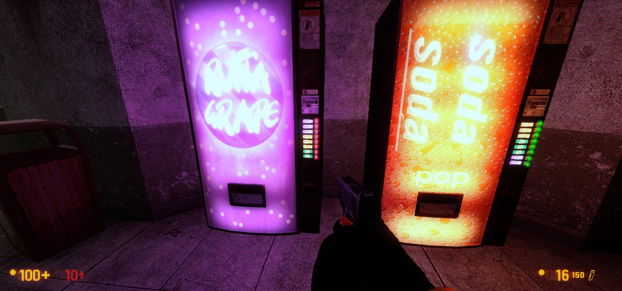 just by raiding a vending machine. That's right kids, take it from Gordon Freeman! Got shot in the head? Mauled by a headcrab? Electrocuted by a vortigaunt? Chemical burns from the bullsquids' acid spit? Or maybe you just broke both legs the good old fashioned way by being stupid and not paying attention while sprinting across a catwalk thirty feet in the air? That's fine, just drink some* soda! The sugar and caffeine will have you back up on your crippled legs in no time at all!