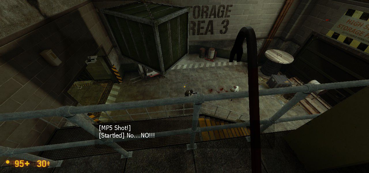 Also, as the last screenshot for this bit, as I was walking away, something kinda funny happened. As I was leaving, the first random idle dialogue for the scientist that came up was this:
