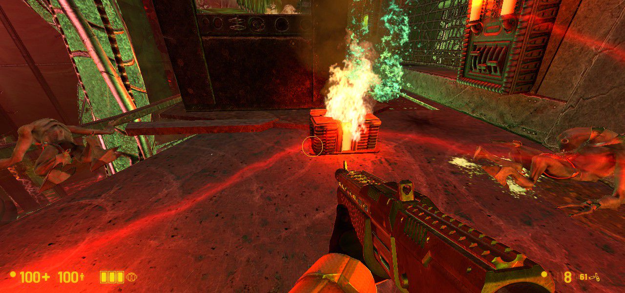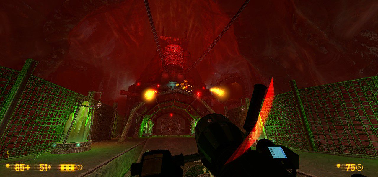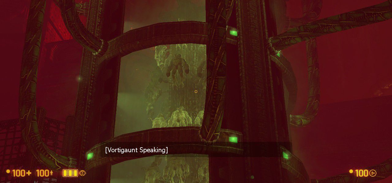 But on the approach, you meet a handful of well-prepared alien grunts, for your first time engaging them in real combat in Xen. And boy oh boy have they changed. On Earth, they were kinda tanky. You know, charging at you, kinda slow and clumsy, but with the health and firepower (space-bee power?) to make up for it. Well, they still have the health and firepower, but now, in their homeworld with lower gravity, they move a lot different. They're fast, and agile, and they actively dodge your shots. They're so much more powerful and it came as a big surprise to me. I admit I died here... several times lol.
