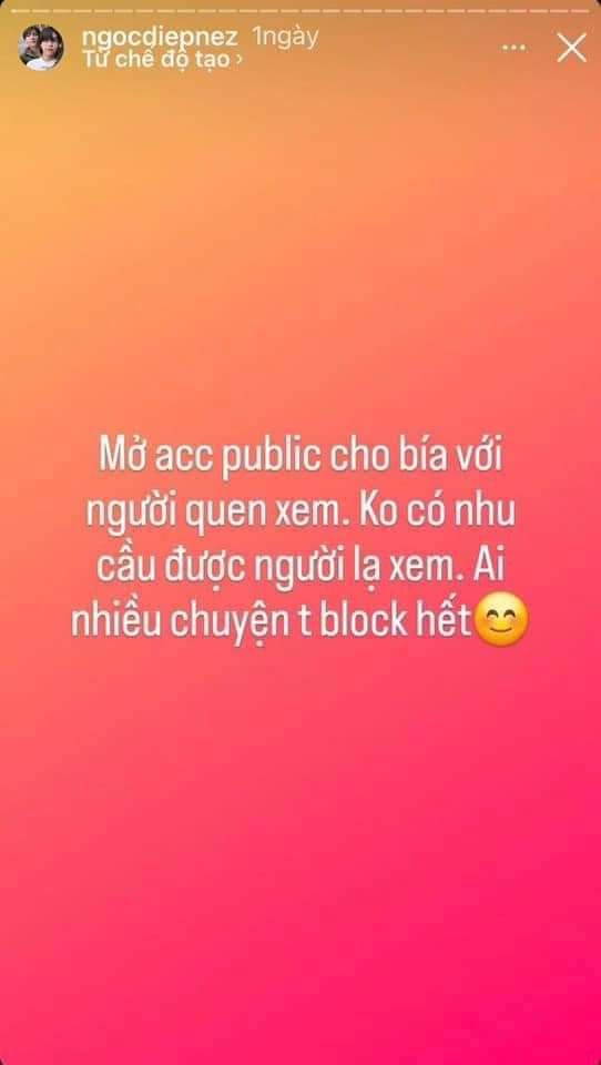 Mọi người ơi, chuyện là chị này chị ý có lớn mà không có não. Sống chó và hai mặt cực kỳ, chị ấy lên trên X thì bảo với mọi người là xanh đỏ ác lắm rồi làm như mình là người bị hại nhưng song song với đó là con người khác của chị ấy hoặc có thể là chị ấy ở một vũ trụ song song nào đó chị ấy chửi Nanon, chửi xanh đỏ, buông những lời lẽ ghê tởm nhất mà một con người có thể tạo ra để chì chiết idol vì idol k coi story của chị ấy. Và chị ấy có một tuyệt chiêu đó là cãi k lại là chị ấy block, khóa nick fb và tik để k ai có thể tag chị ấy được. Lối sống chó còn hơn con chó như chị ấy thì cần phải bị bài trừ, nhưng mong mọi người nhẹ tay chắc tại do tháng 7 kết thúc sớm quá nên chị ấy còn vương vấn nơi trần gian