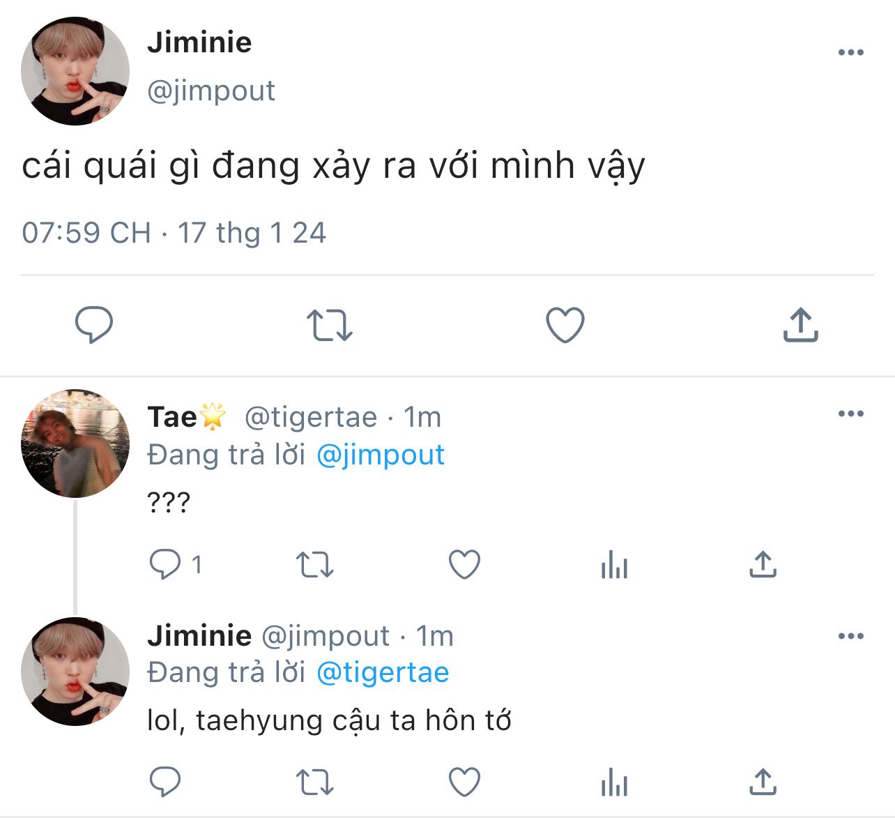 "Họ trông thật kỳ lạ. Chúng ta làm gì đây? Jungkook, làm gì đó đi."