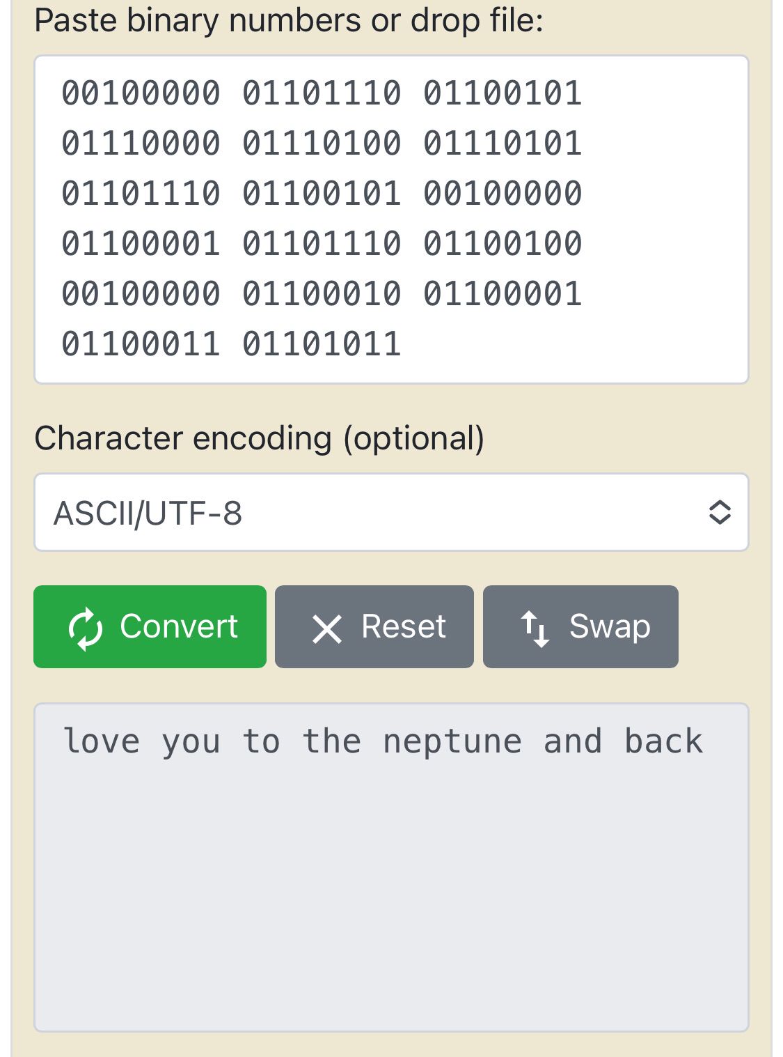 trên thư thằng win viết : "01101100 01101111 01110110 01100101 00100000 01111001 01101111 01110101 00100000 01110100 01101111 00100000 01110100 01101000 01100101 00100000 01101110 01100101 01110000 01110100 01110101 01101110 01100101 00100000 01100001 01101110 01100100 00100000 01100010 01100001 01100011 01101011"